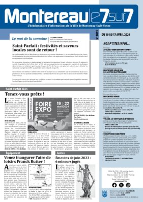 Articles, agendas, informations pratiques et de proximité, naissances et décès, offres d’emploi, "Montereau le 7/7 " dit aussi "le p'tit journal bleu" c’est l’incontournable pour suivre toute l’actualité monterelaise. Distribué dans toutes les boîtes aux lettres, disponible en Mairie.