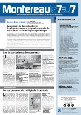 Articles, agendas, informations pratiques et de proximité, naissances et décès, offres d’emploi, "Montereau le 7/7 " dit aussi "le p'tit journal bleu" c’est l’incontournable pour suivre toute l’actualité monterelaise. Distribué dans toutes les boîtes aux lettres, disponible en Mairie.