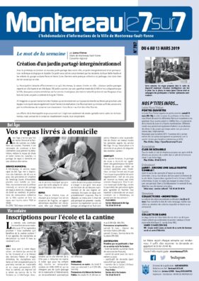 Articles, agendas, informations pratiques et de proximité, naissances et décès, offres d’emploi, "Montereau le 7/7 " dit aussi "le p'tit journal bleu" c’est l’incontournable pour suivre toute l’actualité monterelaise. Distribué dans toutes les boîtes aux lettres, disponible en Mairie.