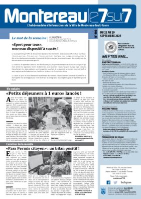 Articles, agendas, informations pratiques et de proximité, naissances et décès, offres d’emploi, "Montereau le 7/7 " dit aussi "le p'tit journal bleu" c’est l’incontournable pour suivre toute l’actualité monterelaise. Distribué dans toutes les boîtes aux lettres, disponible en Mairie.