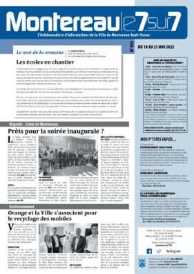 Articles, agendas, informations pratiques et de proximité, naissances et décès, offres d’emploi, "Montereau le 7/7 " dit aussi "le p'tit journal bleu" c’est l’incontournable pour suivre toute l’actualité monterelaise. Distribué dans toutes les boîtes aux lettres, disponible en Mairie.